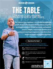 Join us for this free lunch and event, held every 3rd Wednesday (unless specified) at 11:30 am at Rock Creek Church in Prosper, TX. Gather with us at The Table and take the next step toward becoming the impactful leader your community and organization need.